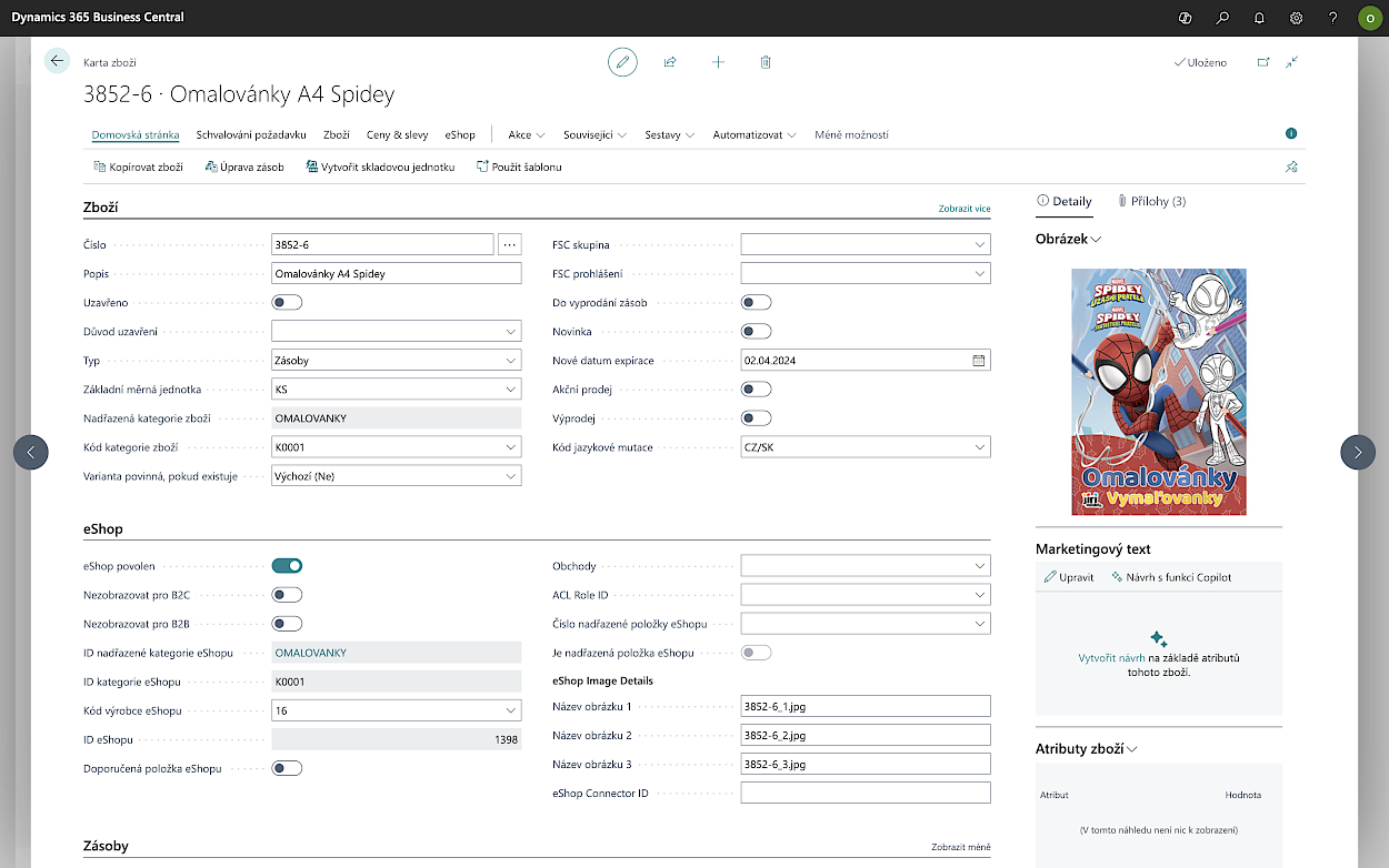 Detail karty zboží v řešení Dynamics eShop propojeném s Microsoft Dynamics 365 Business Central
