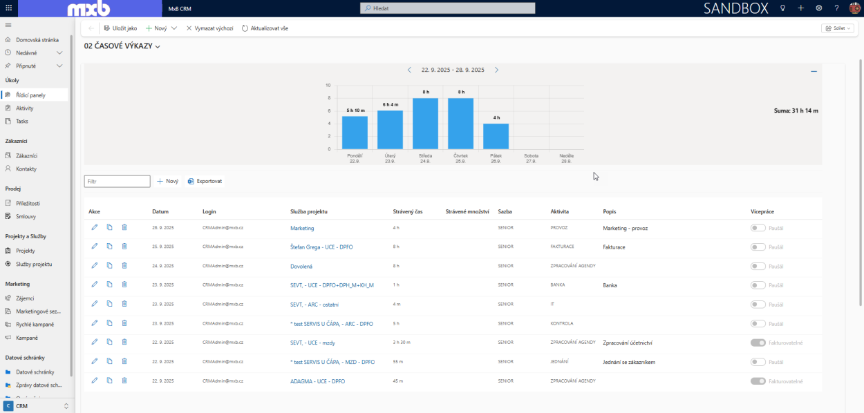 Kromě fakturace klientovi vykazují vaši pracovníci na projektové služby také svoji práci ve formě výkazů práce. Můžete tak sledovat skutečně vynaložený čas a náklady na jednotlivé služby, projekty a klienty.