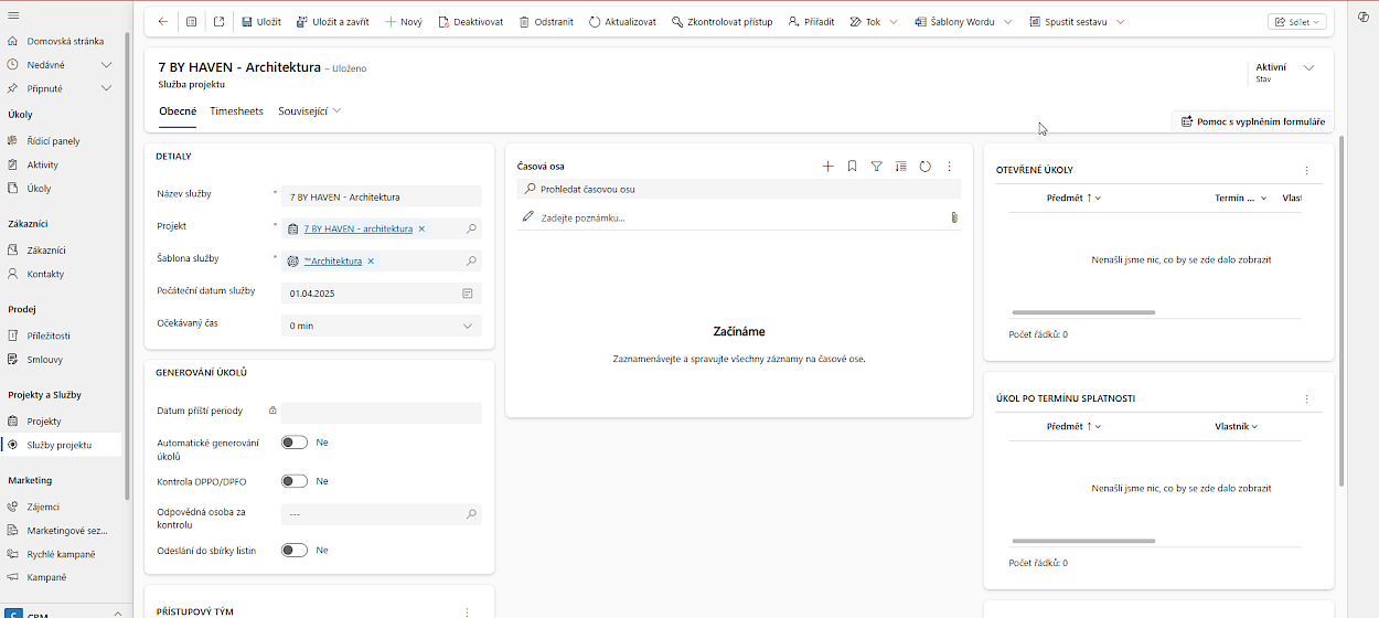U každého projektu si nastavíte aktivní služby a také ceník pro každou aktivní službu, kterou klientovi na daném projektu poskytujete. Systém za vás pak pohlídá, jaké služby mohou vaši zaměstnanci klientovi poskytovat.