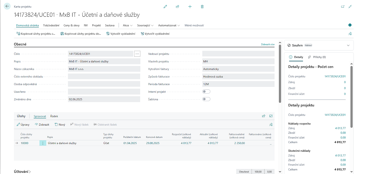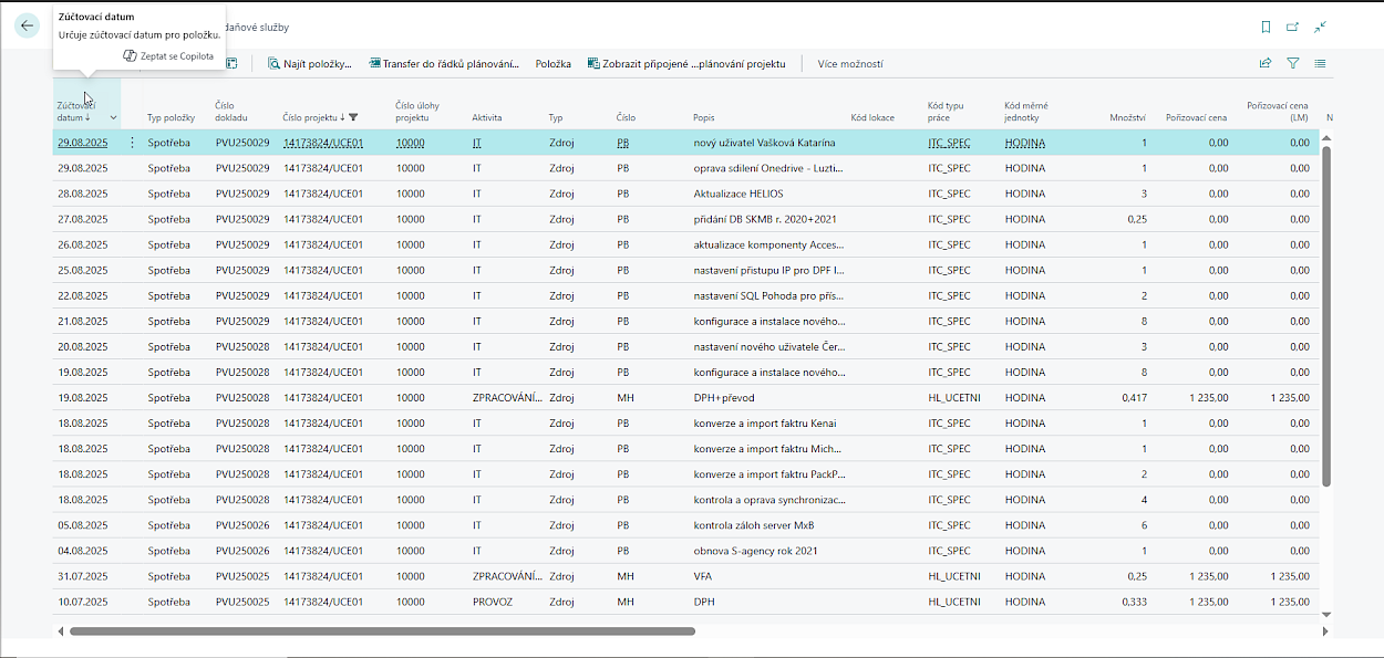 Kromě zadaného času z výkazu práce se k projektu zaúčtují také náklady, které systém dopočítá podle interně nastavených nákladových cen jednotlivých zdrojů.